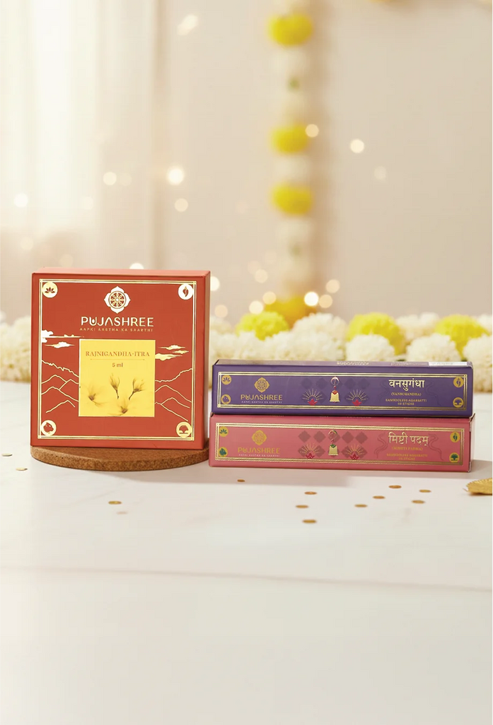 Our Founder & CEO, Rajiv Tiwari Ji, had the honour of presenting Pujashree’s sacred products to Her Highness Princess Manjari Mishra.Together, they shared thoughts on rediscovering the profound essence of Anushthanik Karmkaand and Pooja rituals.