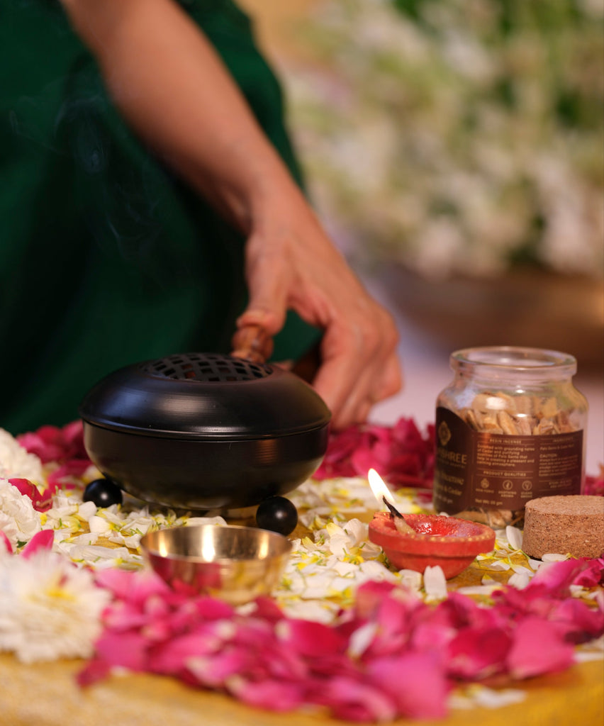 designed tool for burning resins, dhoop, frankincense and other sacred incense. Crafted for