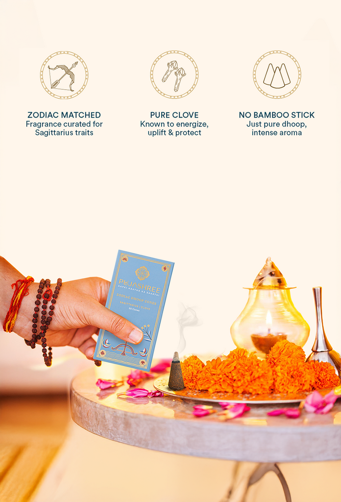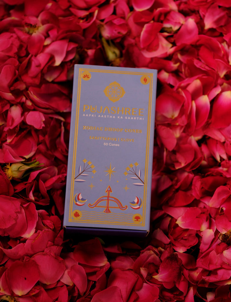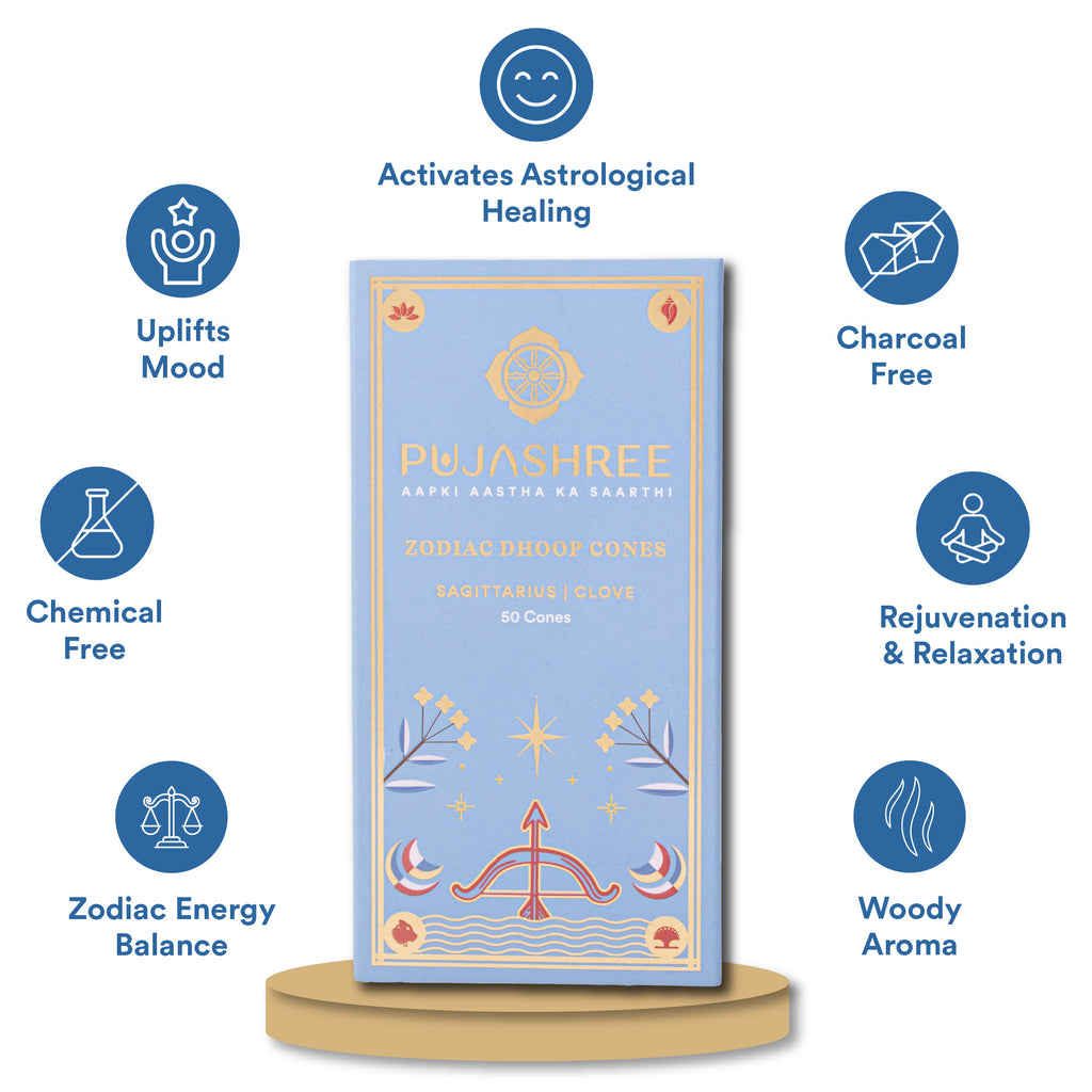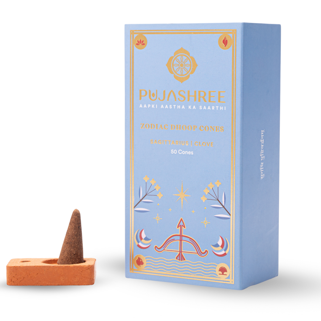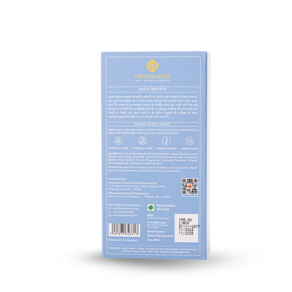 Pujashree Zodiac Dhoop Cones (50 pcs) – Clove Fragrance, Igniting the Sagittarius Spirit
