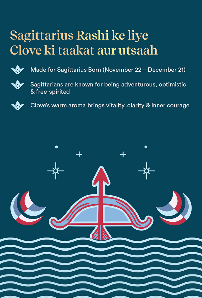 Experience the warm and fiery aroma of Pujashree Zodiac Dhoop Cones – Sagittarius, infused with the bold essence of clove. Hand-rolled and enriched with clove fragrance, it sparks enthusiasm, adventure, and wisdom—qualities that mirror Sagittarius’ optimistic, free-spirited, and philosophical nature.