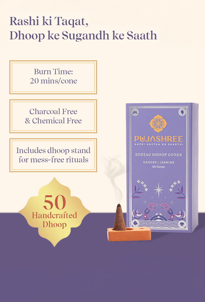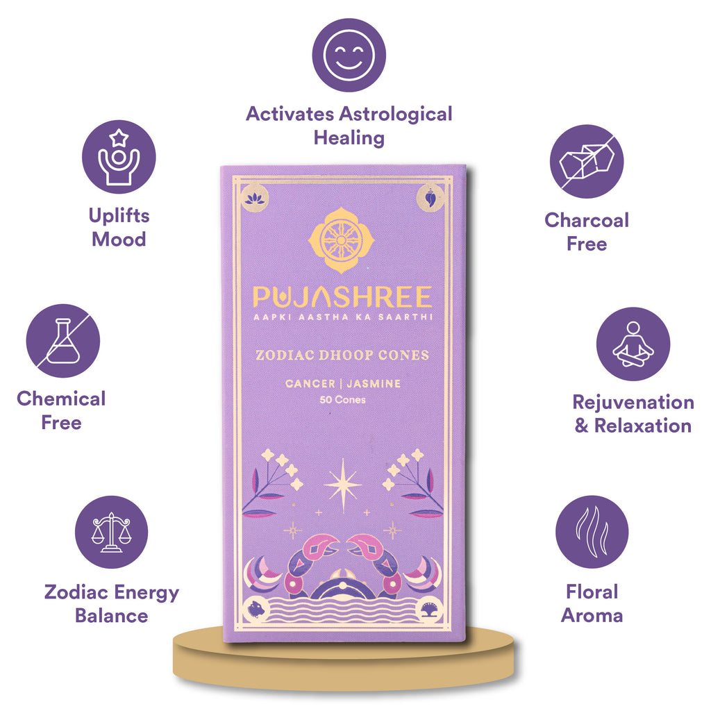Pujashree Zodiac Dhoop Cones – The Gentle Jasmine Aura of Cancer