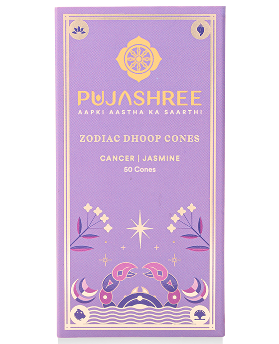 Experience the soft and calming fragrance of Pujashree Zodiac Dhoop Cones – Cancer, infused with the delicate essence of Jasmine. Hand-rolled with devotion and free from charcoal or chemicals, these cones release a soothing floral aroma that mirrors Cancer’s nurturing, intuitive, and compassionate spirit.