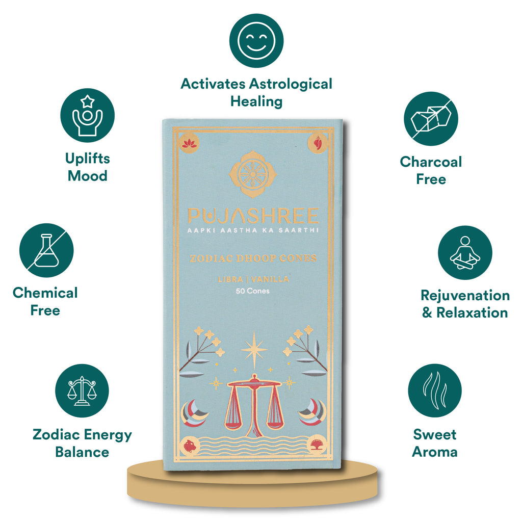 Pujashree Zodiac Dhoop Cones – The Sweet Vanilla Aroma Libra