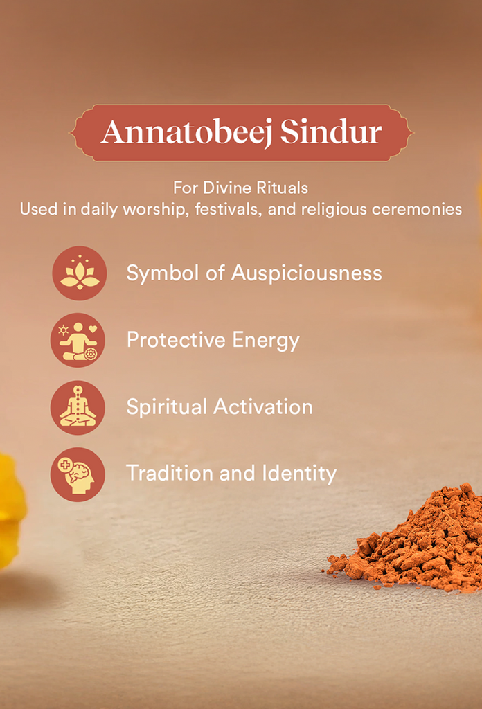 "Annatto Beej" signifies a divine seed of abundance, fertility and growth. Pujashree brings to you 'Annatto Beej Sindoor' crafted with all-natural ingredients and utmost care. Pure sindoor is believed to invoke not only the blessings of Goddess Parvati but also the protection of all deities, ensuring peace and harmony within the home and also strengthening the sacred connection between a married couple.