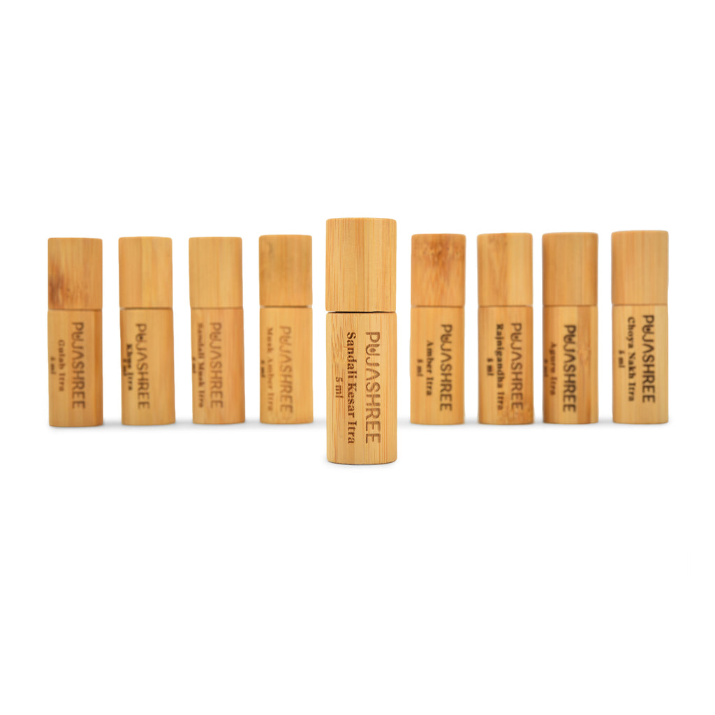 Experience the gandha (fragrance) of Param Sattva (Ultimate Purity) with Pujashree Itra Sandali Kesar. This 5 ml bottle contains a 100% pure, alcohol-free sattvic (pure) attar, blending the two most sacred and royal gandhas (fragrances) in Sanatan Dharma: Sandali (Sandalwood) and Kesar (Saffron). The Chandan (Sandalwood) is cooling and meditative, while the Kesar is warm, auspicious, and royal. This is the ultimate tilak and puja itra (attar).