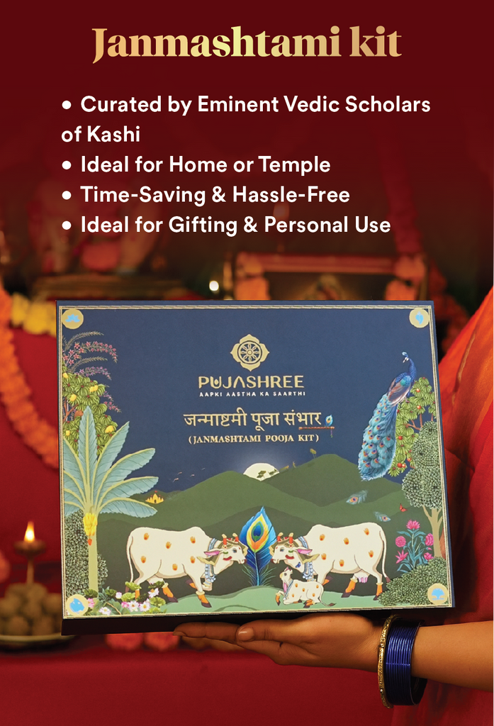 Celebrate the sacred birth of Shree Krishn with the Pujashree Janmashtami Pooja Kit. It is a devotional set of handpicked, traditional items to help you perform Janmashtami rituals with purity, ease and joy.