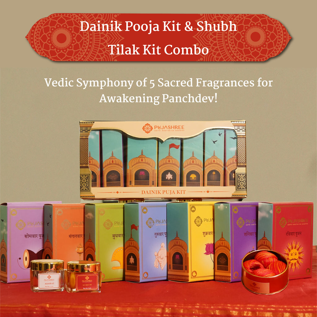 Make your daily spiritual routine effortless and complete with the Pujashree’s Dainik Puja Kit & Shubh Tilak Kit Combo. This thoughtfully paired set brings together essential items for everyday Pooja along with sacred tilak materials, ensuring a smooth, meaningful start to your day.Whether you're performing morning prayers or welcoming guests with an auspicious tilak, this combo covers all your devotional needs