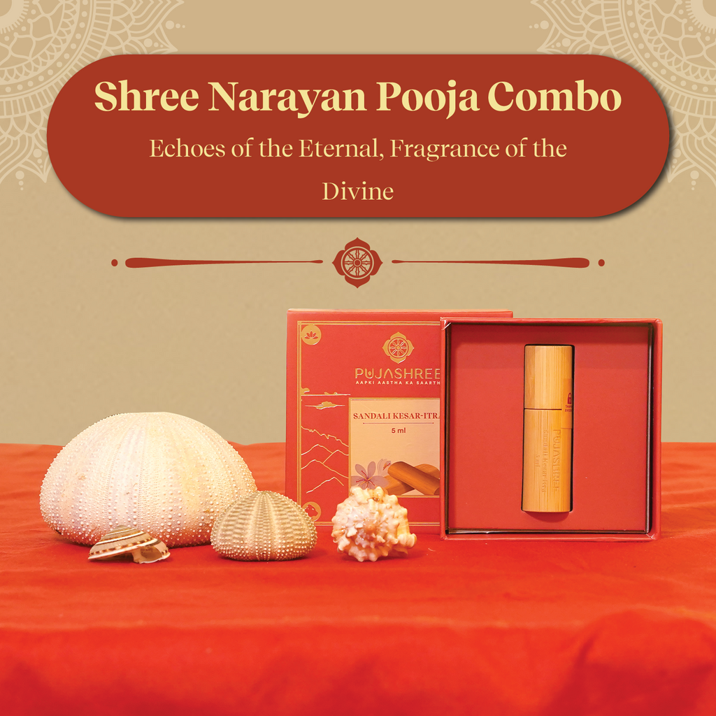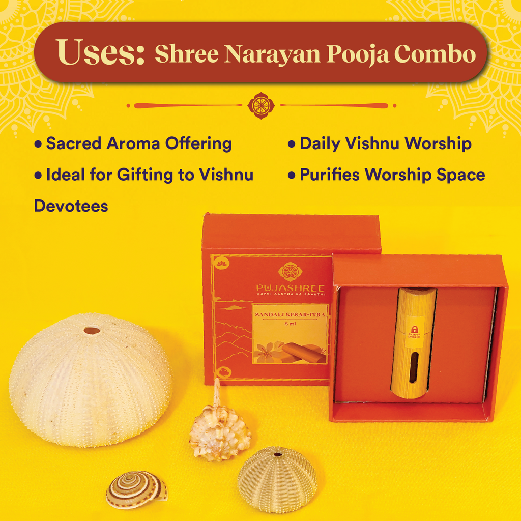 Shree Narayan Pooja Combo | Sahastra Vishnu Shankh with Sandali Kesar Itra for Divine Worship & Aura Cleansing