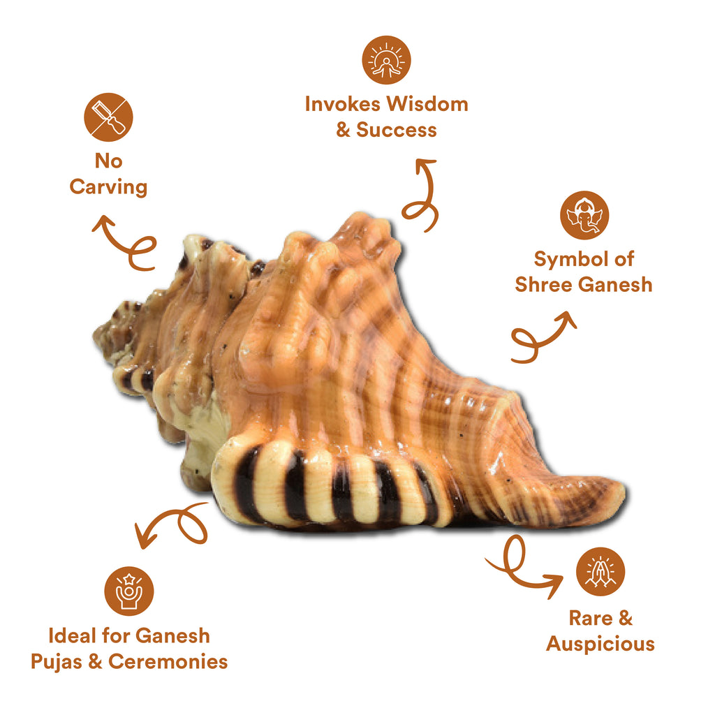 Embodiment of Lord Ganesha: The Ganesh Shankh symbolizes Lord Ganesha, the remover of obstacles and harbinger of wisdom and prosperity. It's a fusion of divine energy and auspiciousness.