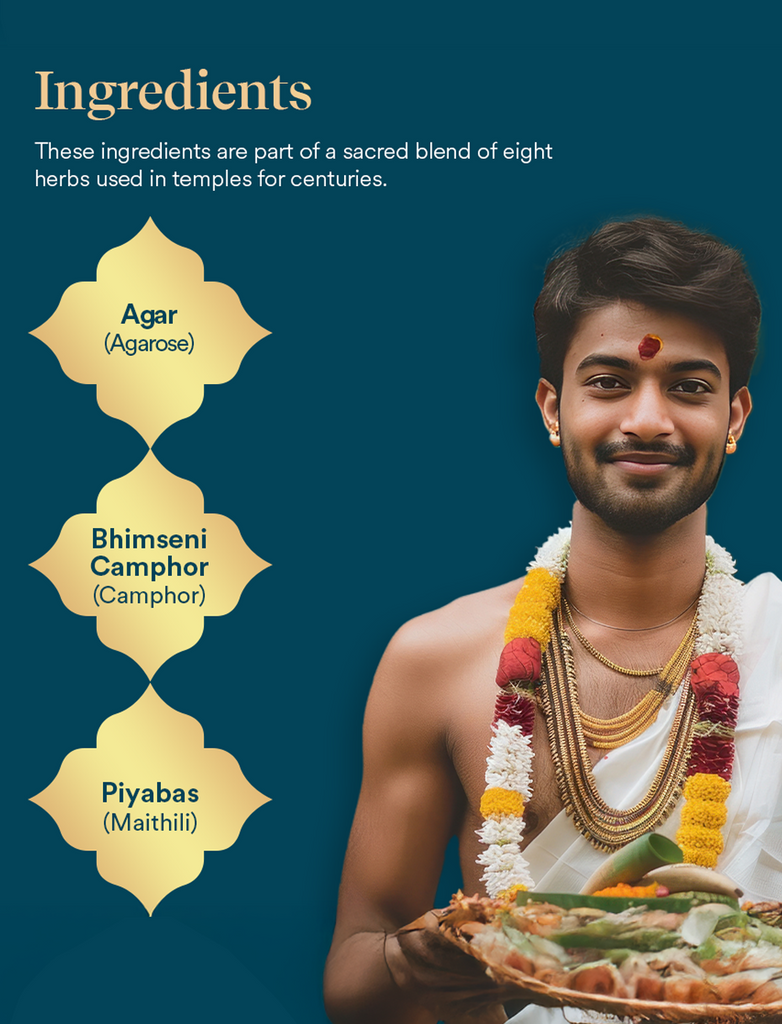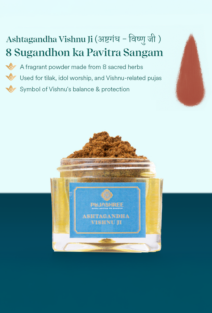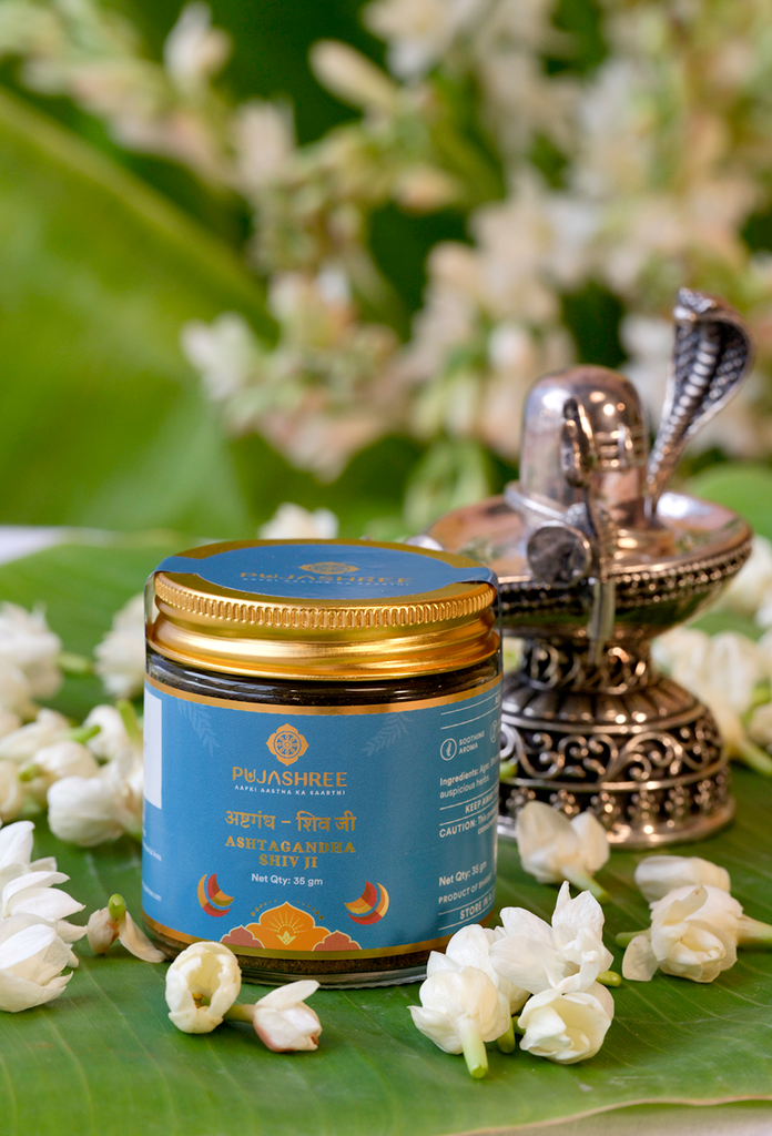Adorn your forehead with the divine fragrance of Pujashree Ashtagandha Shiv Ji Tilak — a sacred blend of eight auspicious natural ingredients including Agar, Bhimseni Camphor, Piyabas and other auspicious herbs, prepared as per Vedic tradition.