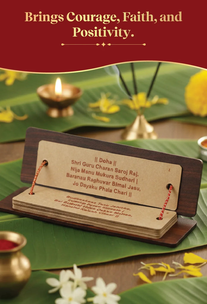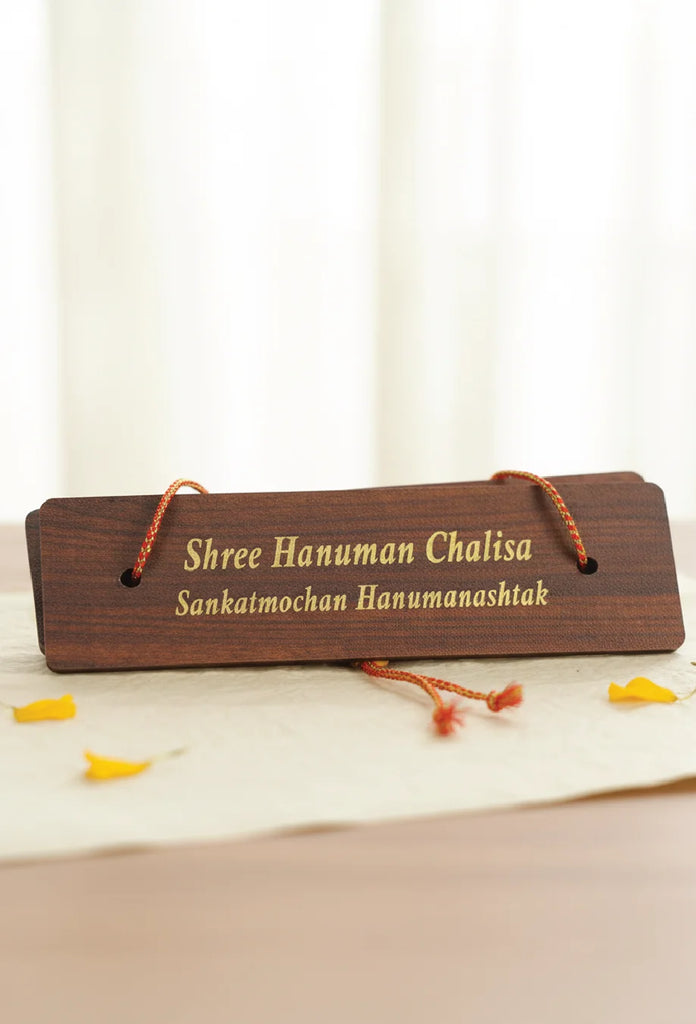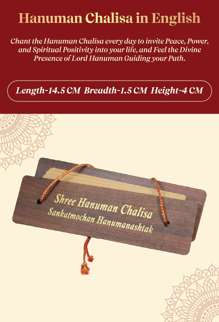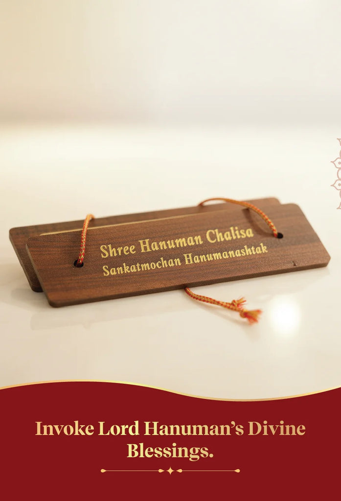 Invoke the boundless strength and protection of Sankat Mochan (the Remover of Calamities) with this exquisite Pujashree Wooden Hanuman Chalisa. The Hanuman Chalisa is a 40-verse hymn of devotion, power, and courage. This premium edition is not a perishable paper book but a lasting spiritual keepsake, precisely laser-engraved onto durable, high-quality wood. Each verse is etched with clarity, creating a sacred, tactile experience, and a permanent kavach (shield) for your home.