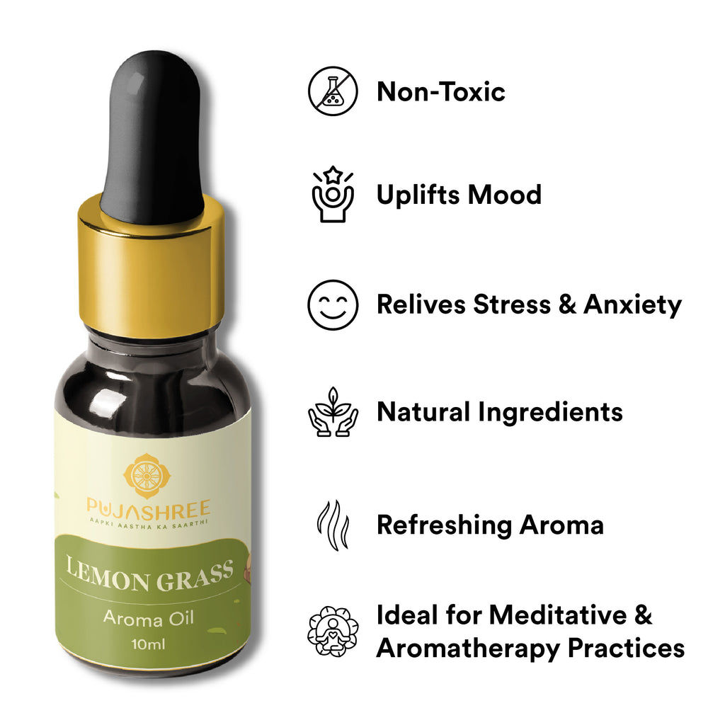 Awaken your Vastu (environment) and energize your mind with Pujashree Aroma Oil in Lemon Grass. This is a high-quality, sattvic (pure), alcohol-free aroma oil that captures the fresh, sharp, and uplifting citrus gandha (fragrance) of Lemon Grass. In Vedic tradition, this gandha (fragrance) is a powerful shuddhi-karta (purifier) that awakens chetna (consciousness). It is also a known upaya (remedy) for Rahu, as its sharp clarity cuts through confusion and mental fog.