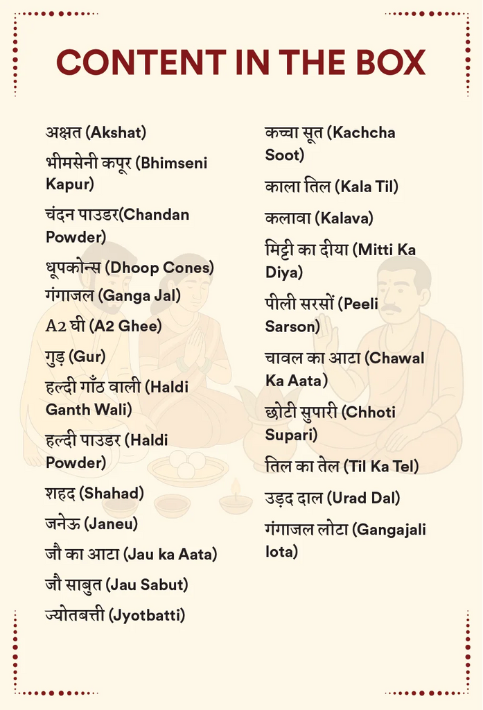Whether performed during Pitru Paksha, Amavasya, or special Shraddh rituals, this kit helps you connect spiritually with your forefathers and seek their blessings for peace, prosperity, and protection of the family.
